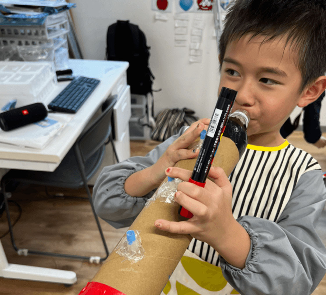 In Japanese class, we also learned about the zodiac. Using picture story videos and art activities, the children grew familiar with this year’s zodiac sign. One activity was making snake kites. Tied to our current UOI How We Express Ourselves, the children chose from circle, triangle, or square bases and cut them into spiral shapes. Kites cut from triangles and squares looked more angular, while those from circles curled like coiled snakes—each one unique! We flew them outdoors, and the spinning motion brought smiles and laughter from the children.
