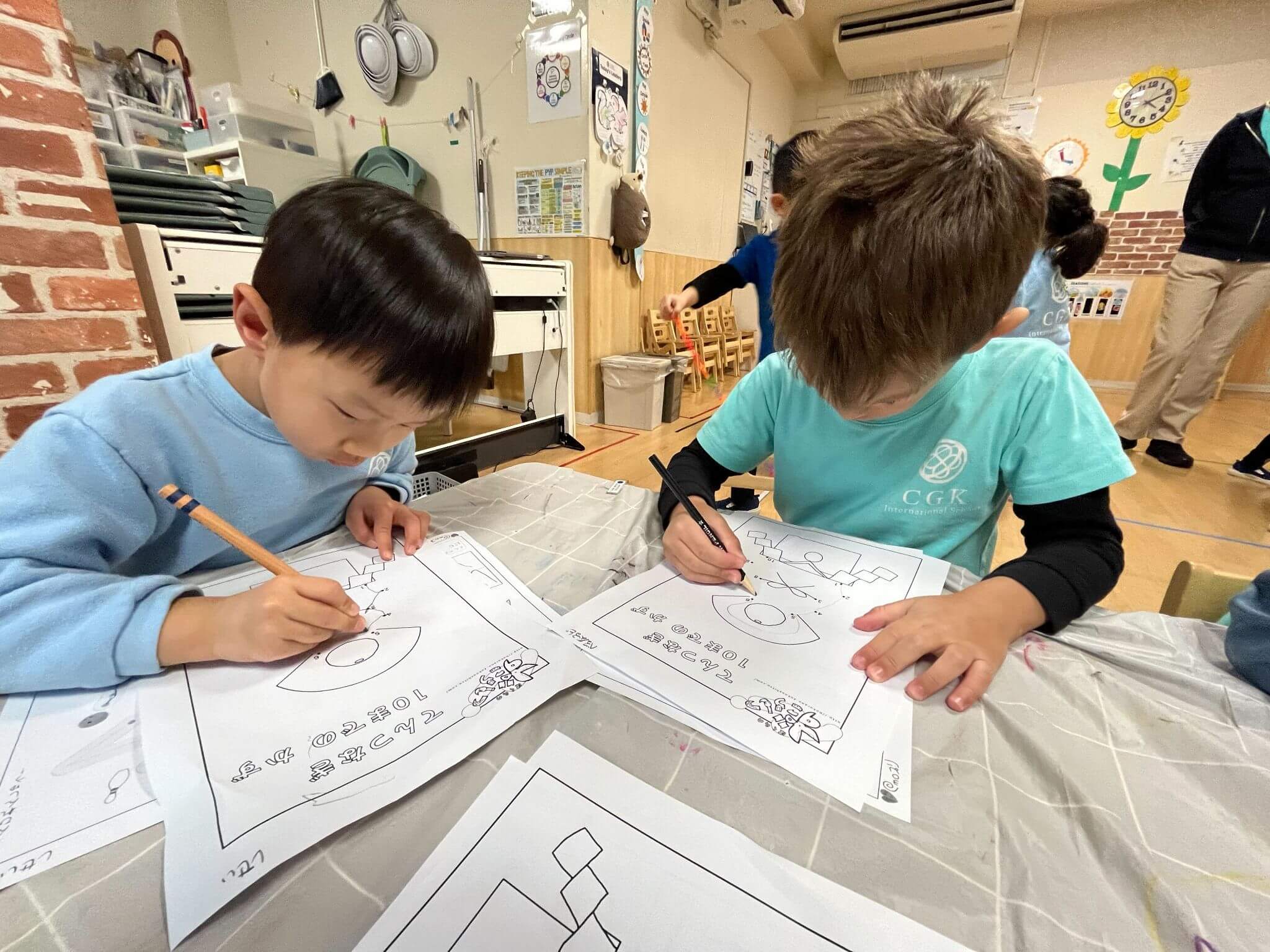 Both our English and Japanese lessons have been filled with fun and interactive shape activities. Ocean A has been super eager to learn through hands-on experiences. We’ve set up learning centers where the children get to explore shapes in a variety of ways—tracing, drawing, coloring, building, and even matching different shapes to one another. Each activity helps the children understand the properties of shapes in a fun, engaging way. Not only have we been talking about shapes, but we’ve also been hunting shapes around the classroom and even outside. It’s been amazing to spot shapes in and around their everyday environment. The children are noticing these shapes all around them, and it's fantastic to see them start connecting what they’re learning to the world around them.