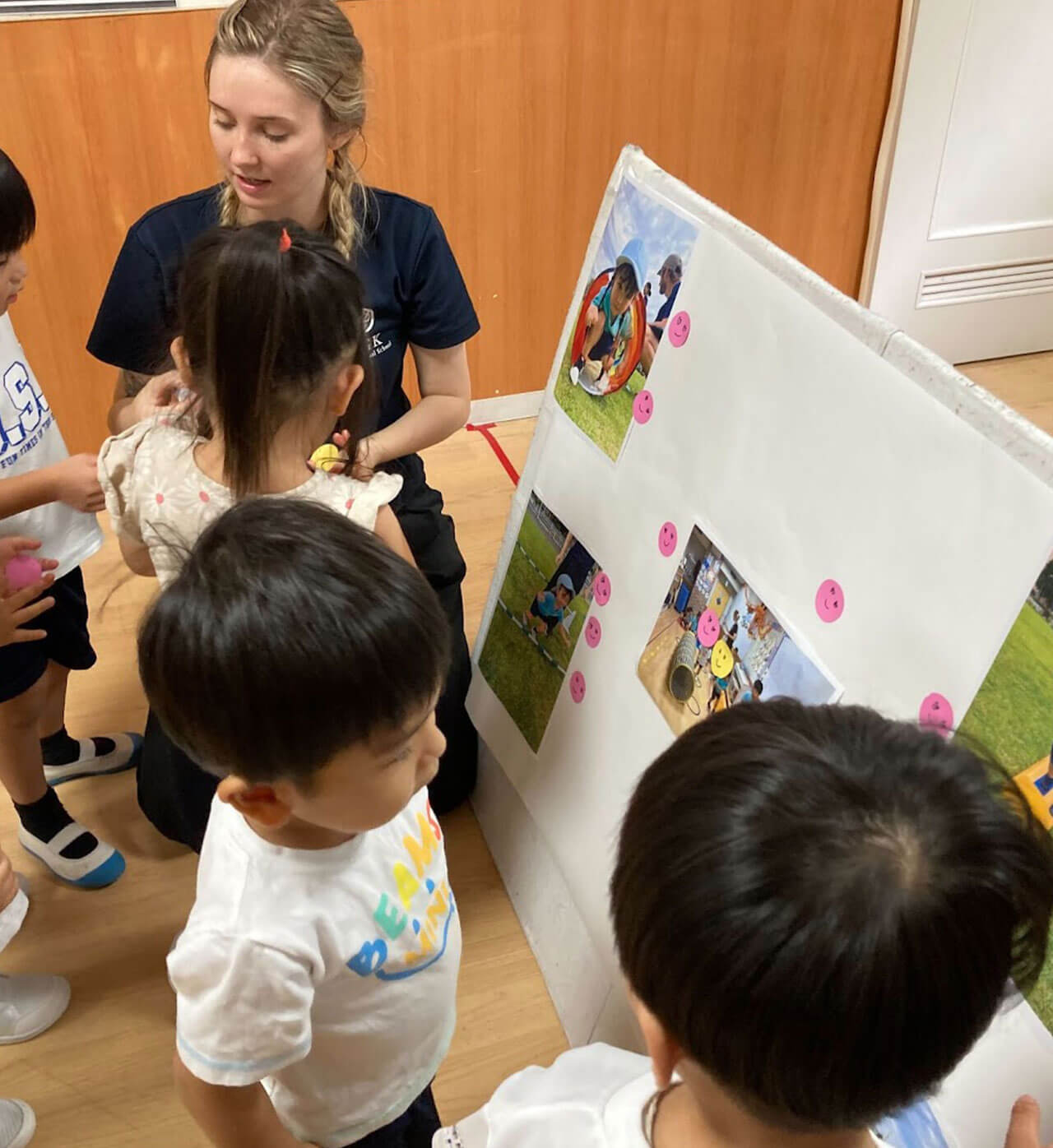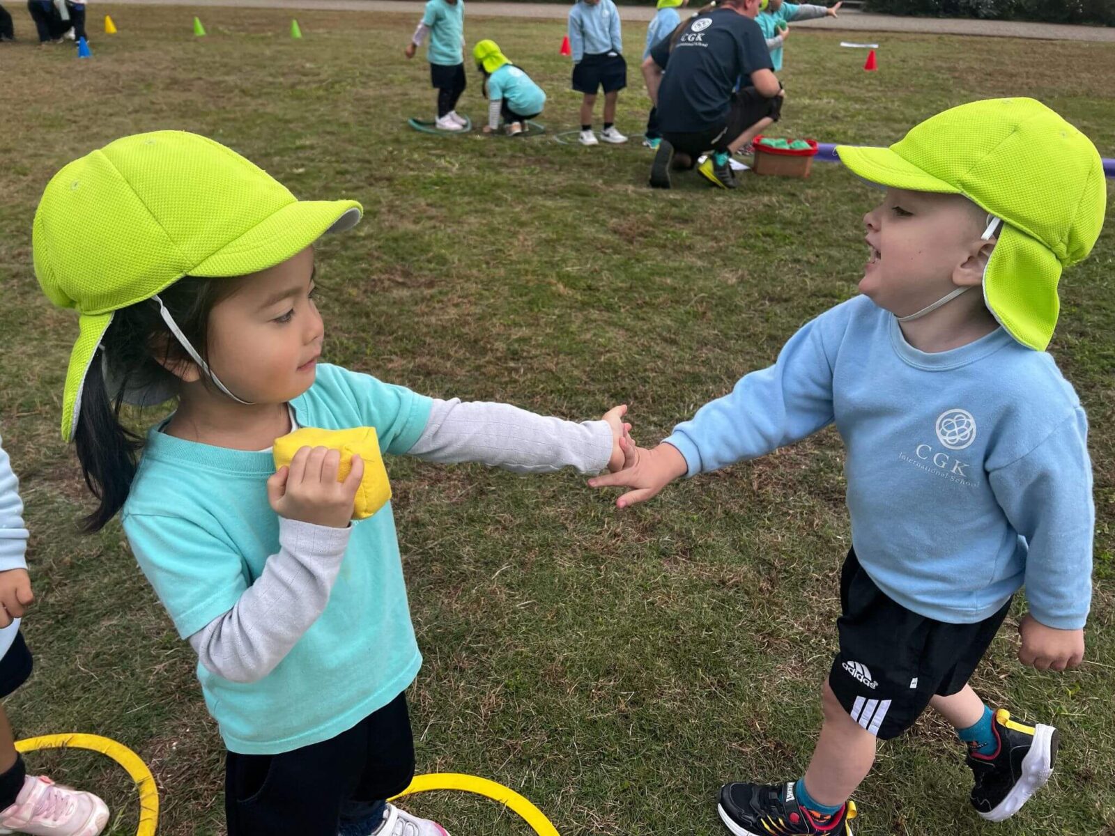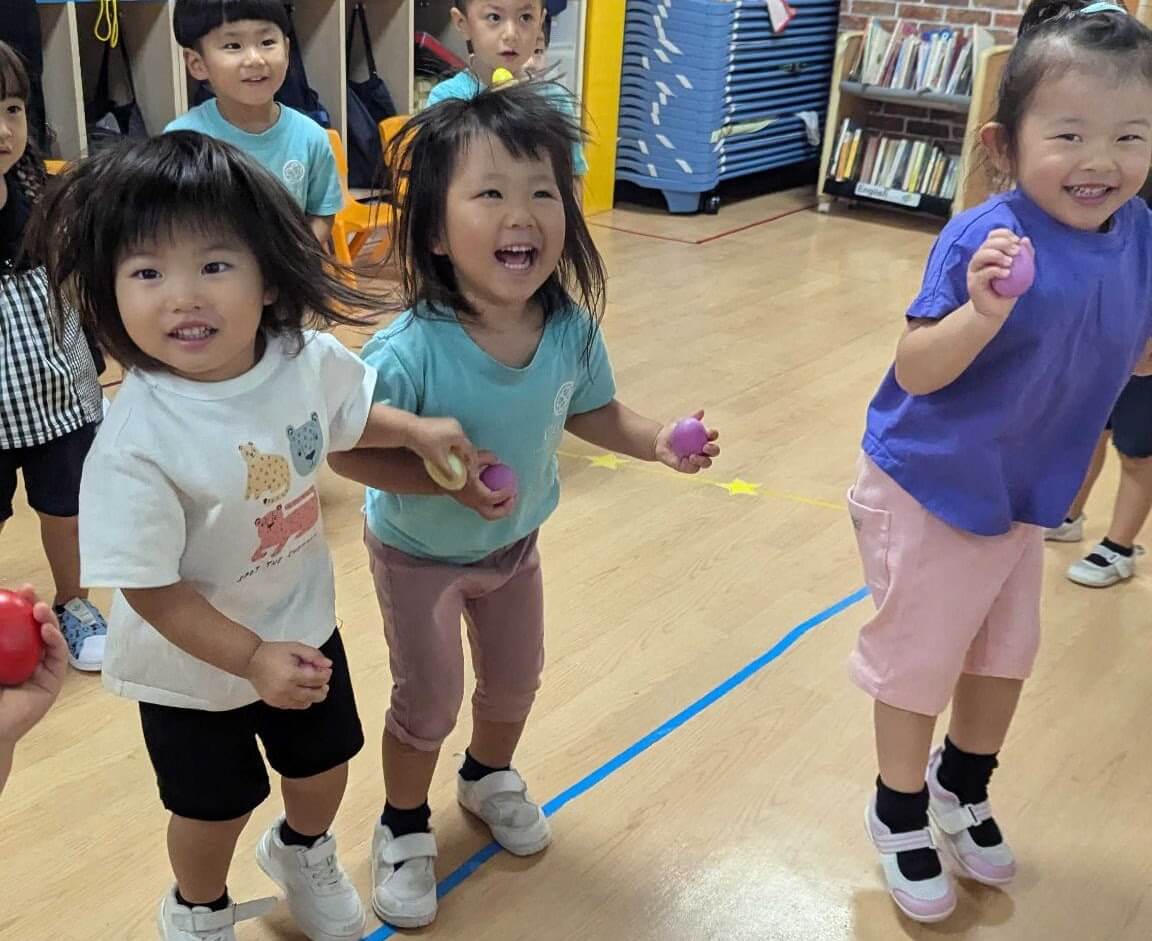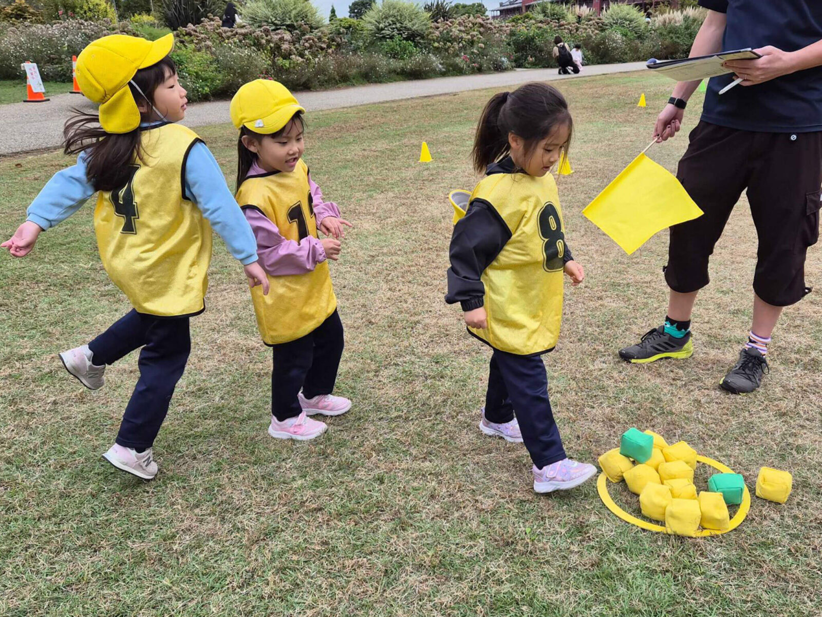 Sports Dayに向けては、ゲームを楽しみながら、グループで協力する練習をしています。最近では個人での活動よりも、友達との関わりやチーム活動を好むようになってきました。ただ、「チームで力を合わせて勝つ」という意識はまだ難しい部分もあり、練習を重ねる中で「自分のチームが勝つためにはグループみんなの協力が必要かも!」と少しずつ理解していく姿が見られます。喜びや悔しさを分かち合いながら、日々たくさんの成長を見せている子どもたち。当日は、これまでの練習の成果と、仲間と一緒に頑張る子どもたちの姿をどうぞお楽しみに!ご家族の皆さまにもたくさん応援していただき、子どもたちと一緒に楽しい一日を過ごしていただけたら嬉しいです。