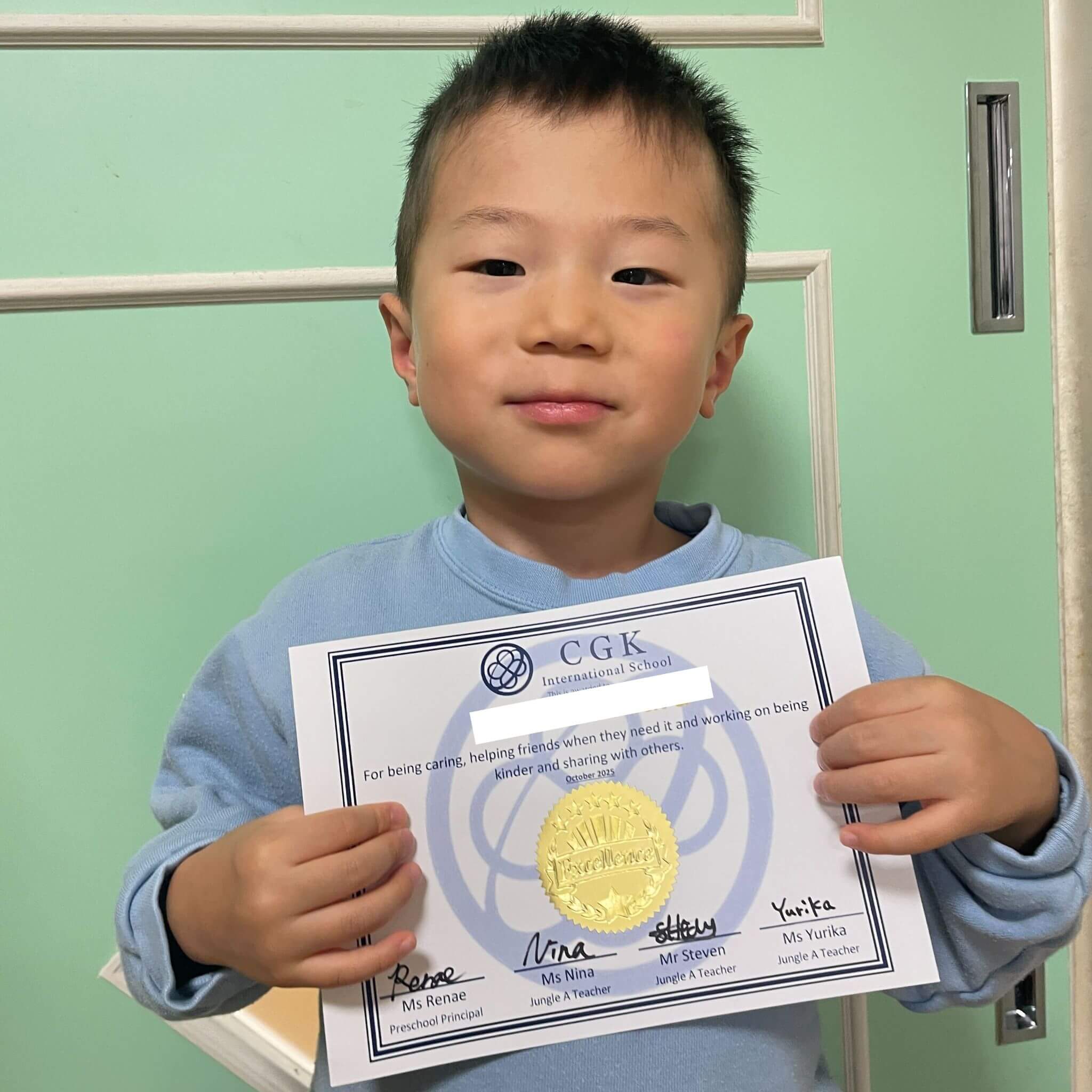 CGKでは毎月「CGKアワード」がありますが、こちらはIB学習者像のさまざまな側面を重視した賞です。一方、「Superstar of the Week」はもっと基本的なレベルにフォーカスし、Jungleクラスの子どもたちにとってわかりやすい言葉や達成内容で行われます。