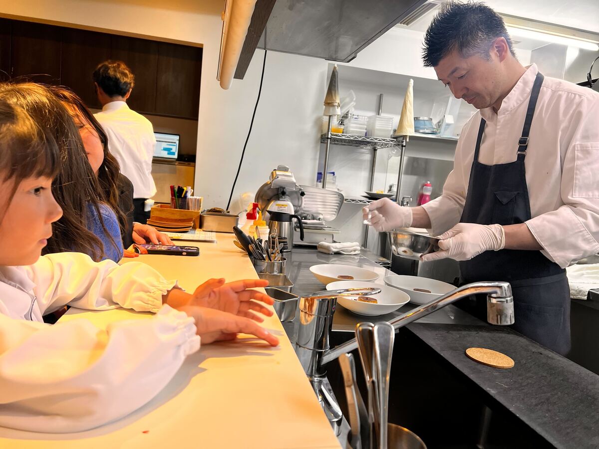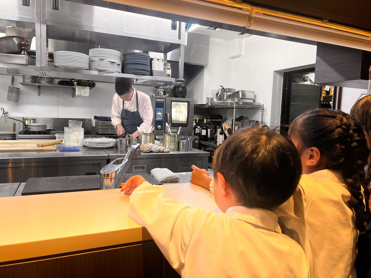One of the highlights was the opportunity for students to peek into the kitchen and watch the chefs hard at work. With curious eyes and eager questions, the children observed how different dishes were thoughtfully prepared. They watched fresh pasta noodles being made, fish dishes carefully cut and crafted, and desserts beautifully assembled. Seeing the process firsthand brought their classroom learning to life and gave them a new appreciation for the art and effort that goes into each plate.