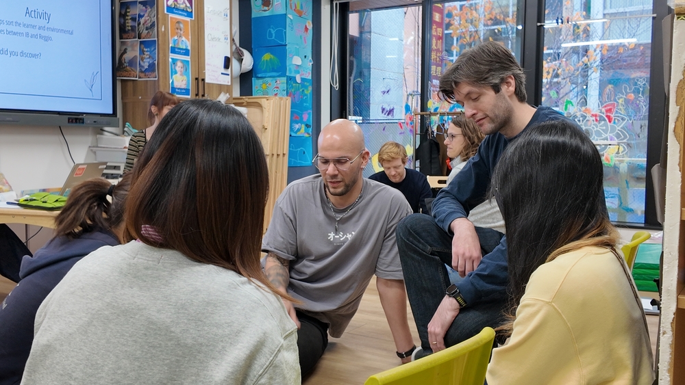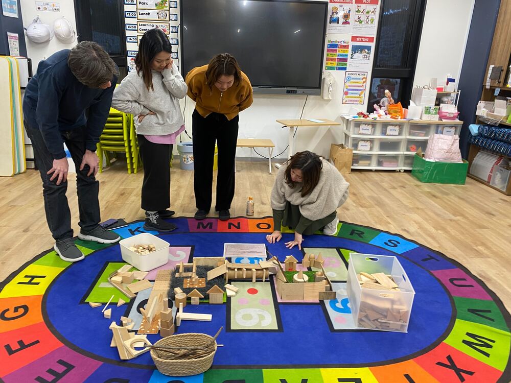 p>午前中は、教師主導による複数のワークショップを同時開催しました。あるグループでは、レッジョ・エミリア・アプローチに着想を得た環境づくりやルーズパーツについて探究し、教材や素材がどのように探究のきっかけ(provocation)となり、探究の単元を深めていくかを話し合いました。別のグループでは、効果的な朝のルーティンに焦点を当て、自立性を高め、移行をスムーズにし、学習者の主体性を育むための実践を共有しました。次のワークショップでは、教師が二つのセッションから選択しました。一つは幼児期におけるフォニックスやリテラシーセンターをテーマに、遊びを通した発達段階に適した読み書きの実践について学ぶセッション。もう一つは、教師自身の成長と発達に焦点を当て、レジリエンスやアイデンティティ、ウェルビーイングについて振り返るセッションで、振り返る実践者(reflective practitioner)としての役割を再確認しました。