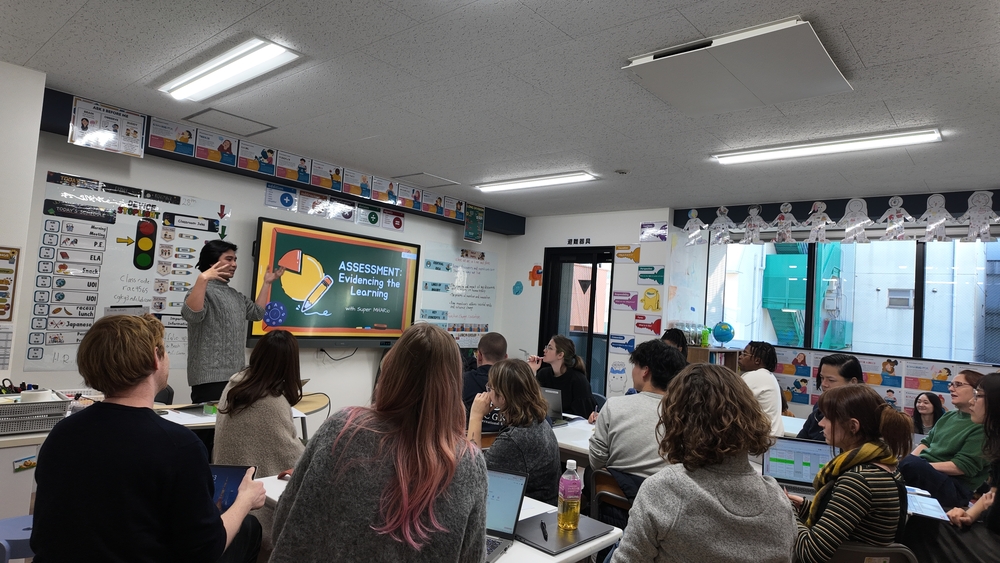 午後は全教員が集まり、全体セッションを2つ実施しました。1つ目のセッションではIBのカリキュラムデザインに焦点を当て、概念理解、超教科的テーマ、明確な学習のねらいがどのように一貫性と意味のある学びを生み出すのかを確認しました。学年を越えた協働を通して、縦のつながり(バーティカル・アラインメント)や共同計画の在り方を深めました。